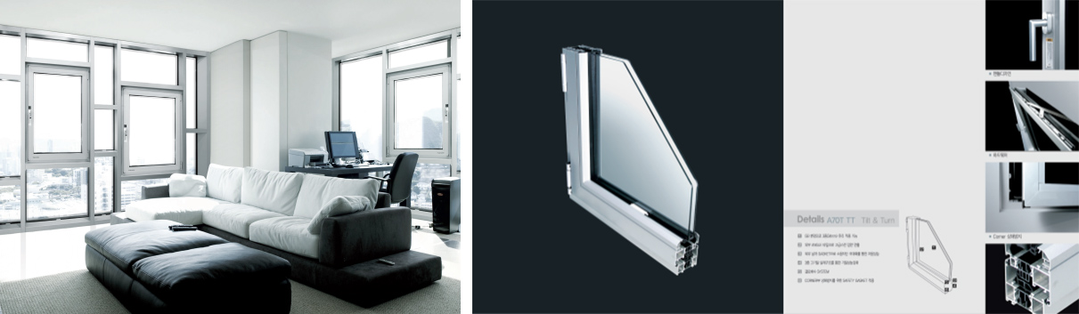 기존의 AL시스템창의 단열 성능을 크게 개선하여 주거용에서 사업용 건물까지 다양하게 사용 가능합니다.