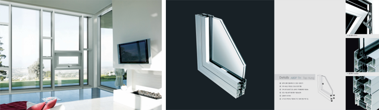 내부 인테리어에 간섭받지 않고 급속 환기가 가능한 OUTWARD TURN ONLY 시스템창입니다.