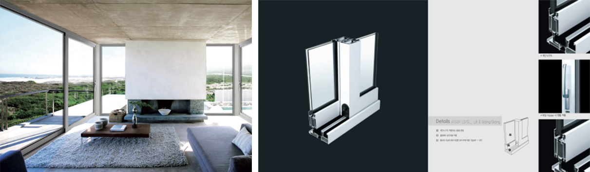 단열, 결로구조 그리고 단차 배수구조는 일반 미서기 창호와 다른 기술을 보여줍니다.