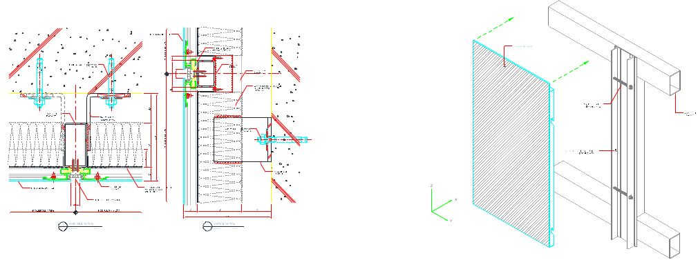 금속재 Panel 외벽 공법의 가장 일반적인 예로 시공이 간단하고 경제적인 장점을 가지고 있으며,기능적으로 Water Barrier와 Thermal Insulation이
